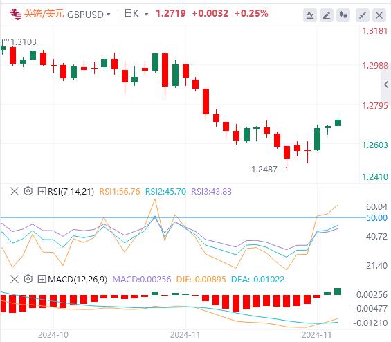 英镑/美元在欧洲时段的涨幅跟随上升,在1.2700以上的正区域交投。该货币对仍有望结束八周连跌。