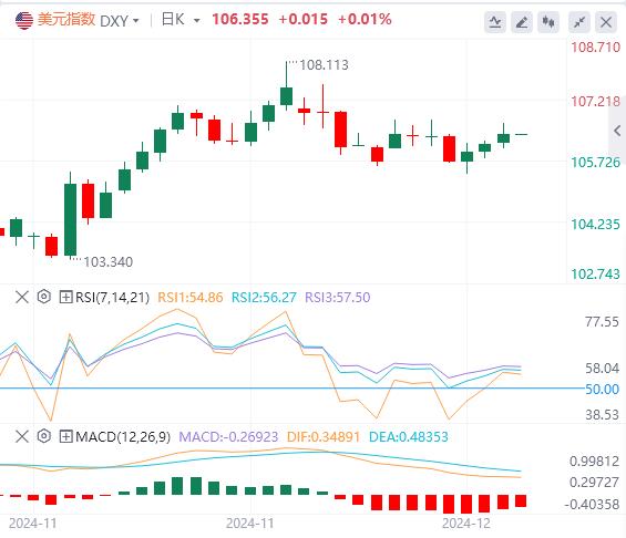 美元指数:截止发稿,美元指数徘徊在106.35附近。美元指数在106.00关口附近趋稳,因为在上周强劲的非农就业(NFP)数据之后,市场重新调整。虽然市场普遍预期美联储(Fed)将在12月降息,但现在的注意力转向将于周三公布的11月消费者价格指数(CPI)数据。分析师预计年度整体通胀率将从10月份的2.6%升至2.7%,而核心CPI可能保持在3.3%不变。技术面上,美元指数正试图收于106.50水平上方。如果这次尝试成功,美元指数将走向下一个阻力位107.10–107.30。