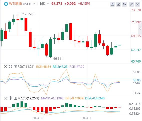 12月11日,北京时间周三亚市早盘,美元指数徘徊在106.35附近。周二,美元指数延续涨势,盘中一度涨至106.62的日内高点,最终收涨0.22%,报106.38。美债收益率有所回升,两年期美债收益率收报4.147%,10年期美债收益率收报4.225%。受地缘政治紧张局势升温以及美联储下周将进行第三次降息的预期支撑,现货黄金周二一度逼近2700关口,持续刷新近两周来新高,最终收涨1.25%,报2693.59美元/盎司。现货白银在尾盘回吐日内大部分涨幅,最终收涨0.19%,报31.88美元/盎司。因市场预计全球最大买家中国和欧洲的原油需求将上升,两油小幅上涨,WTI原油先跌后涨,盘中一度涨至68.76美元的日内高点,随后回吐大部分涨幅,最终收涨0.4%,报68.18美元/桶;布伦特原油收涨0.2%,报71.89美元/桶。