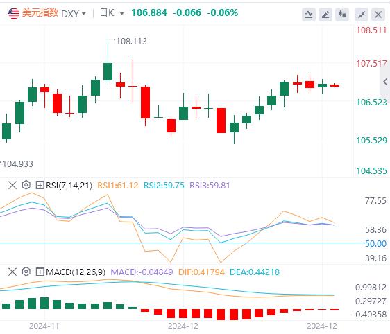 周二,随着交易员等待美联储年内最后一次政策会议的结果,美元指数维持高位震荡,截至目前,美元报价106.88。