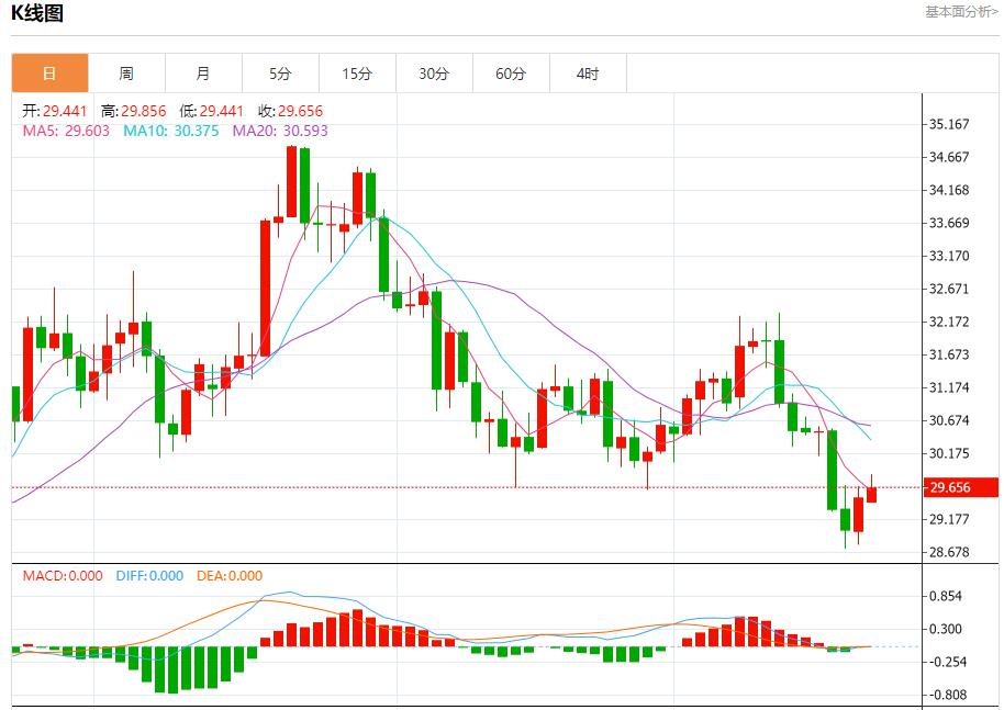 现货白银:截止北京时间21:20,现货白银上涨,现报29.661,涨幅0.54%。纽市盘前,白银价格现在返回测试关键阻力29.63美元,正如我们在最近的报告中提到的,价格需要保持在这一水平以下,以保持负面情景活跃,因为这一水平代表图表中出现的头肩顶形态的破碎颈线,等待下跌并访问28.40美元作为下一个主要目标。