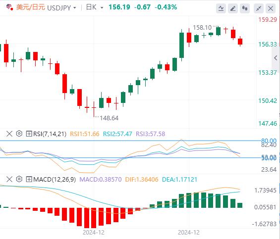 美元/日元周一转跌,跌幅超过0.5%,抹去了前一周的大部分涨幅。该货币对继续下行,最新交投于156.50下方。