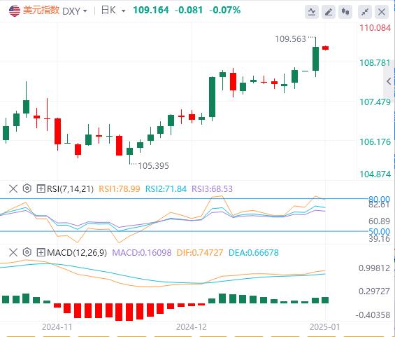 周四,因市场预期特朗普的政策将提振美元,美元指数向上触及109关口,截至目前,美元报价109.16。