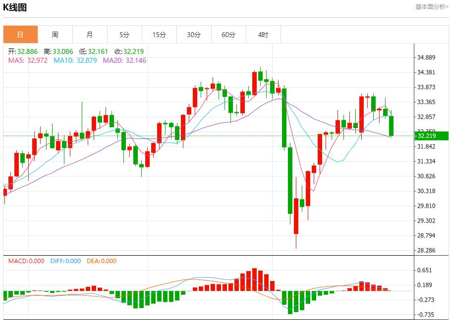 Spot Silver: a partir de 20:20 tempo de Pequim, Spot Silver caiu, agora em 32.224, uma queda de 2,09%. Antes da Bolsa de Valores de Nova York, os preços da prata caíram acentuadamente no último dia de negociação, rompendo o apoio principal de US $ 32,70 e superando o apoio da EMA50, que, além de sinais negativos (RSI), também trouxe pressão negativa.