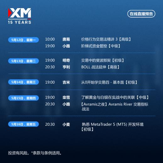 de segunda a sexta -feira, bloquear as palestras ao vivo do XM Online para dominar facilmente o conhecimento prático e as mais recentes informações do mercado.