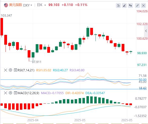 Na segunda -feira, o índice do dólar continuou a recusar, caindo abaixo da marca de 99 devido a uma grande reviravolta na política de Trump e aos gastos abrangentes e aos cortes de impostos que ele está promovendo, o que tornou os investidores detidos pelos ativos americanos. O índice do dólar continuou a diminuir, caindo abaixo da marca 99. A partir de agora, o preço do dólar é 99,10.