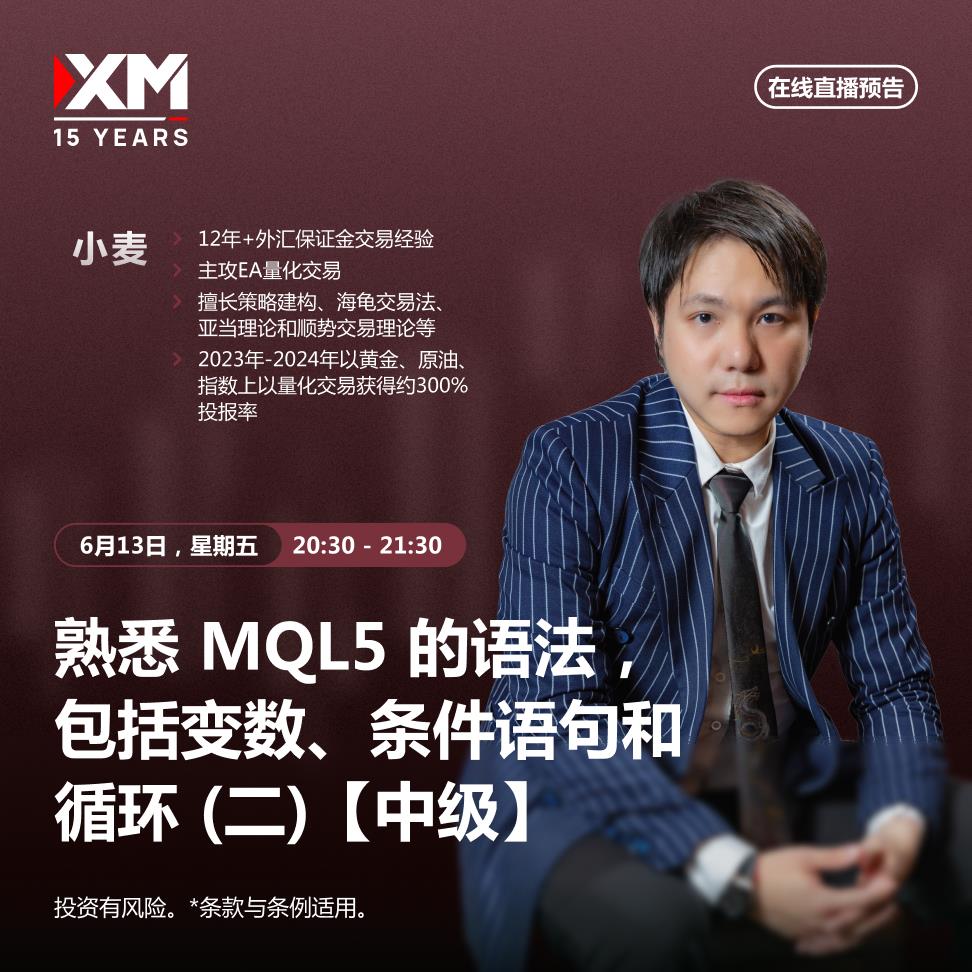 Hoje à noite, às 20:30 Beijing, o professor Xiaomai o levará a se familiarizar xn--xm-6d1dw86k.com a gramática do MQL5, incluindo variáveis, declarações condicionais e loops (2) [intermediário]. O conteúdo ao vivo inclui: