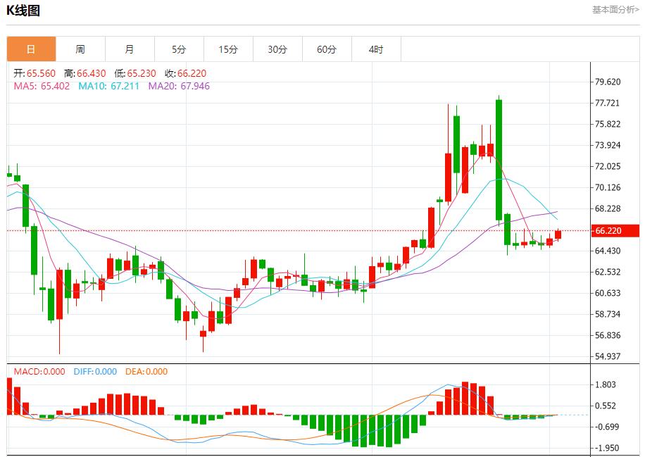 Mercado de petróleo bruto: a partir de 20:23 Pequim, o petróleo dos EUA aumentou, agora em 66,210, um aumento de 1,16%. Antes da Bolsa de Valores de Nova York, (petróleo bruto) mantinha uma gama estreita de flutuações entre a resistência de US $ 65,56 e o suporte de US $ 63,70, indicando que o mercado está em um estado de caos e expectativas, aguardando novas motivações para aumentar os preços para atravessar esse intervalo.