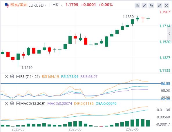 Euro/USD flutuou por volta de 1.1800 após um ligeiro declínio na quarta -feira.