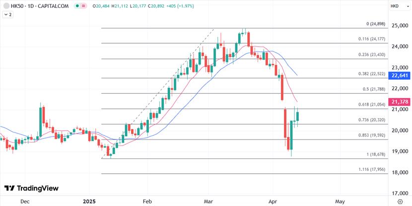 Após uma semana de acentuadas flutuações, as atuais estoques de Hong Kong já estão um pouco mais calmas, mas o mercado ainda está se concentrando na possibilidade de mudanças na posição tarifária de Trump. Portanto, antes de mais orientações de notícias, preste atenção se as ações de Hong Kong se recuperaram continuamente, mas permanecerão dentro da recente faixa baixa. O índice HK50 está negociando temporariamente entre 20.000 pontos e 21.000 pontos. A menos que possa quebrar a resistência da média móvel de 10 dias perto de 21.400, ele pode melhorar tecnicamente e atrair os xn--xm-6d1dw86k.compradores para acompanhar.