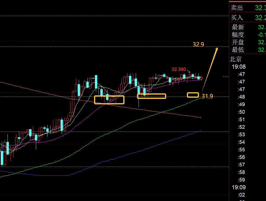 prateado: o 31.9 Primeira linha segmentação é ainda. Aguarde o MACD gradualmente se mover para baixo e se aproximar do eixo zero e, em seguida, aguarde a oportunidade de se estabilizar e subir ainda mais; Hoje à noite, o 31.9 ainda está otimista no lado baixo, a baixa de ontem é a colina de Feng Shui, e o alvo de resistência é 32,9;