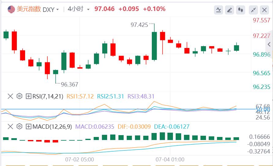 Geçen Cuma günü, ABD Doları endeksi Trump tarafından tanıtılan "büyük ve ABD faturası" nedeniyle düştü ve ABD Doları endeksi düştü. Şu an itibariyle, ABD doları fiyatı 97.04.
