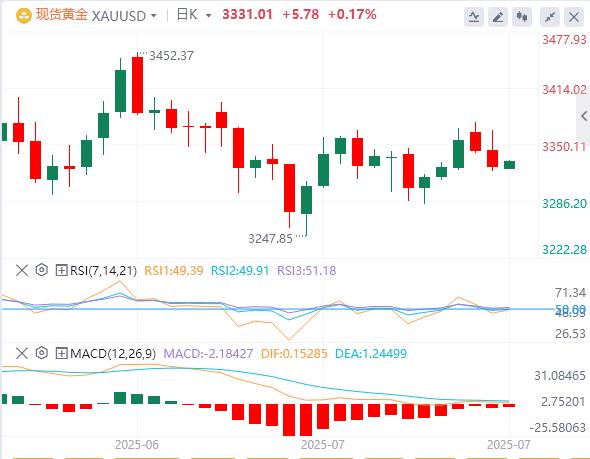 Çarşamba günü Asian oturumunda 3331.01. Trump, yakında vergi oranı%10'un biraz üzerinde olan küçük ülkelere tarife mektupları göndereceğini ve altın fiyatları için güvenli bir destek sağlayacağını söyledi. Yatırımcılar için mevcut altın piyasası hem zorluklarla hem de fırsatlarla doludur. Kısa vadede, altın fiyatları 3.300 $ ila 3.400 $ aralığında dalgalanmaya devam edebilir, ancak uzun vadede jeopolitik riskler, enflasyon beklentileri ve gevşek para politikası eğilimleri altın fiyatları için yukarı doğru eylem sağlayabilir. Yatırımcılara, ABD dolarındaki eğilimlere ve altın piyasadaki yatırım fırsatlarını ele geçirmek için tahvil getirilerine dikkat çekerken, yaklaşan ÜFE verilerine ve Trump yönetiminin tarife politikasındaki son ilerlemeye yakından bakmaları tavsiye ediliyor.