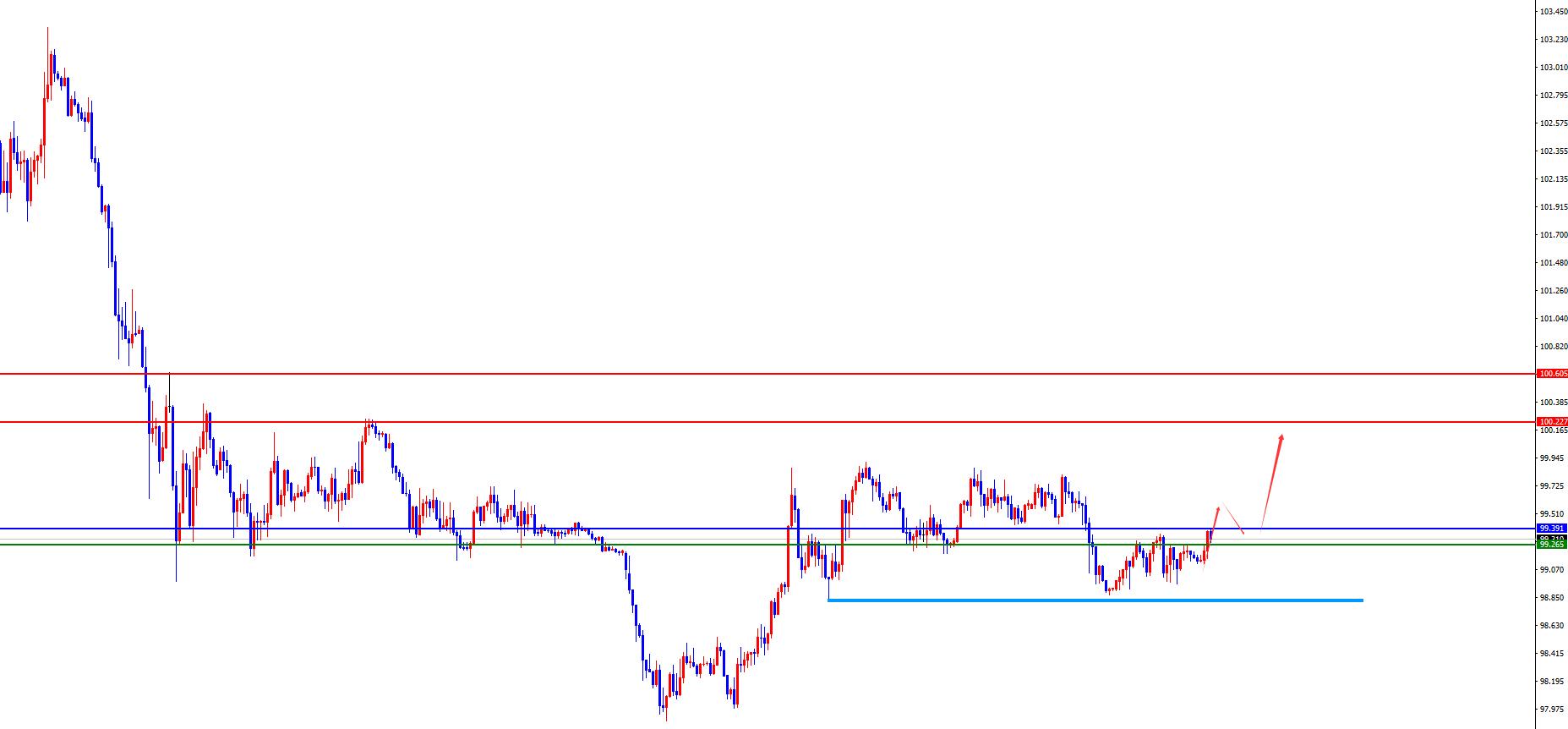 美指99.20-30區間多,防守5美金,目標99.80-100.20-100.60