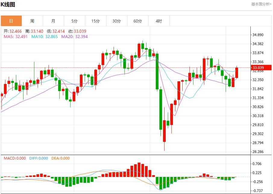 現貨白銀:截止北京時間20:20,現貨白銀上漲,現報33.047,漲幅1.83%。紐市盤前,白銀價格在日內交易中出現波動,試圖收集其上次上漲的收益,以收集可能有助於其恢復上漲的積極力量,受其在EMA50上方交易的支持,並在短期基礎上的看漲修正趨勢和沿斜線交易的主導下,除了(RSI)上出現積極信號之外,儘管達到了超買水平。