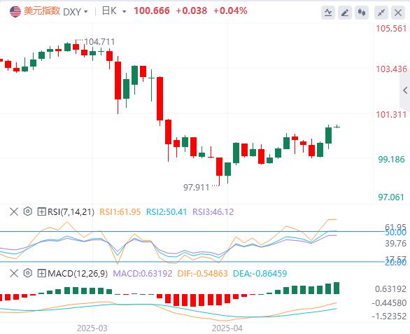 5月9日,北京時間週五亞市早盤,美元指數徘徊在100.66附近。週四,特朗普宣布與英國達成“突破性”貿易協議,美元指數觸及4月10日以來的最高讀數,最終收漲0.76%,報99.86。基準的10年期美債收益率收報4.2740%;對貨幣政策更敏感的兩年期美債收益率收報3.7870%。現貨黃金一度下觸3290美元,最終收跌1.79%,報3304.98美元/盎司;現貨白銀收跌0.15%,報32.45美元/盎司。因英美達成貿易協議,以及美國宣布對伊朗石油的企業實施制裁,國際油價大漲逾3%。 WTI原油最終收漲3.99%,報60.22美元/桶;布倫特原油收漲3.69%,報63.17美元/桶。