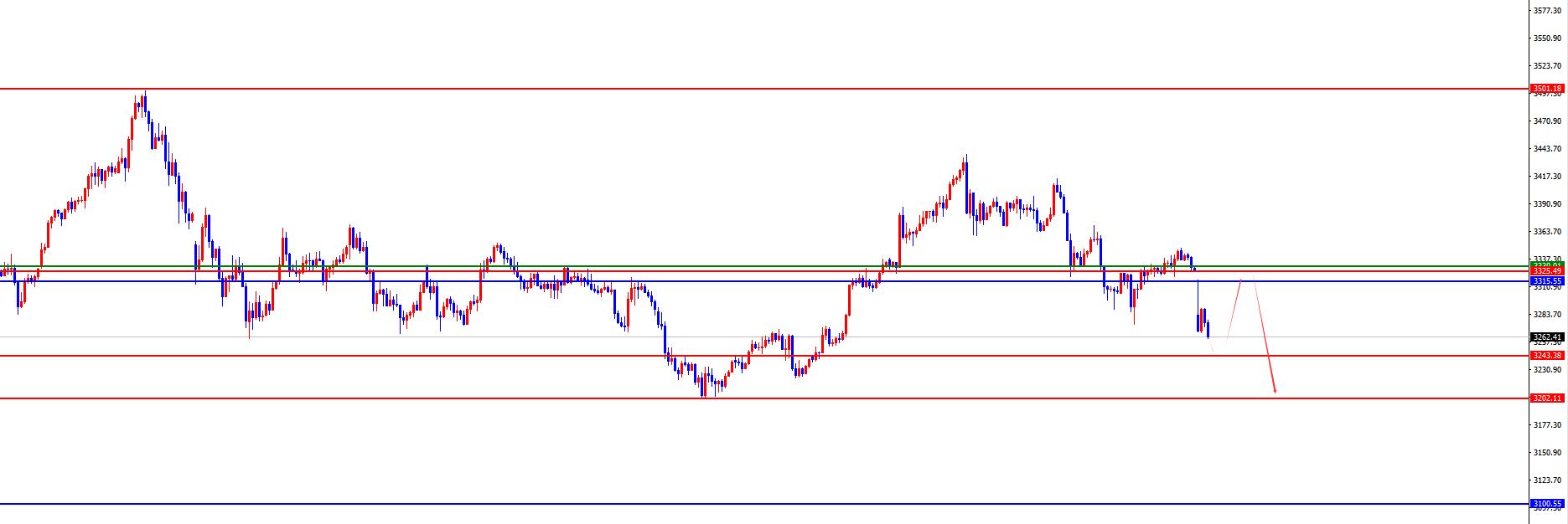 黃金3325-26區間空,防守3348,目標3260-3243-3202