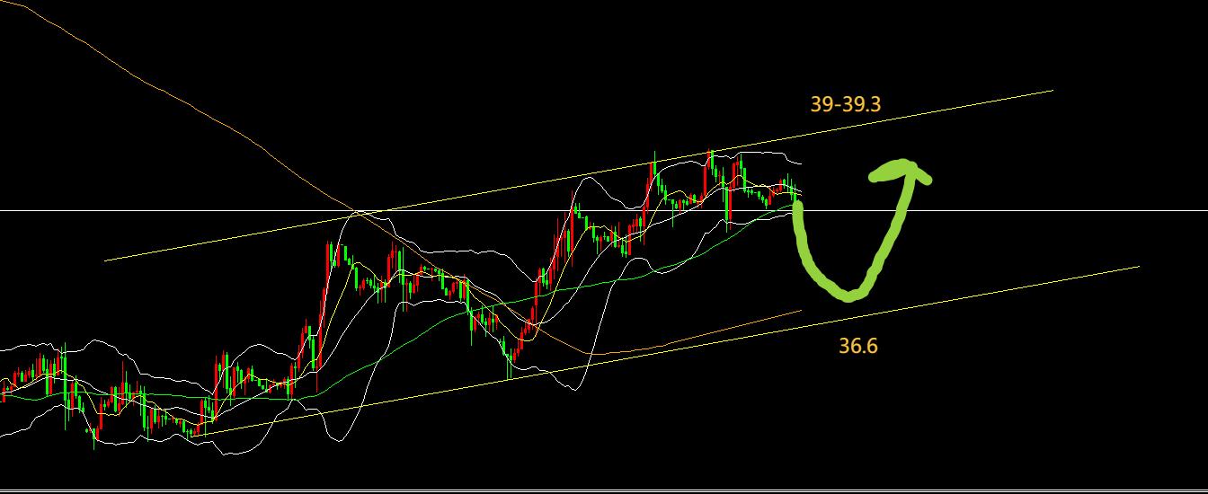 原油方面:昨日研報講過,短週期macd處於背離,需下探修復一波,才能進一步上漲反彈;今日依然留意一波下跌,打到下軌36.6一線穩定之後再去震盪看漲;