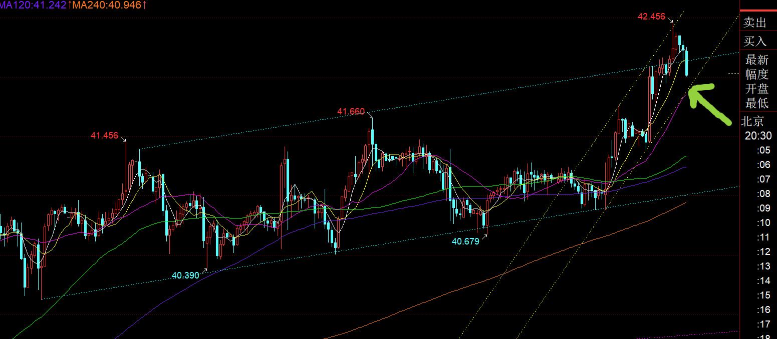 第二,白銀方面:這週白銀是最靚的仔,一路提示40.4、40.5、40.6、40.7-40.8上堅持看漲,低點逐步上移,今日爆發了,衝擊42美元的上方;