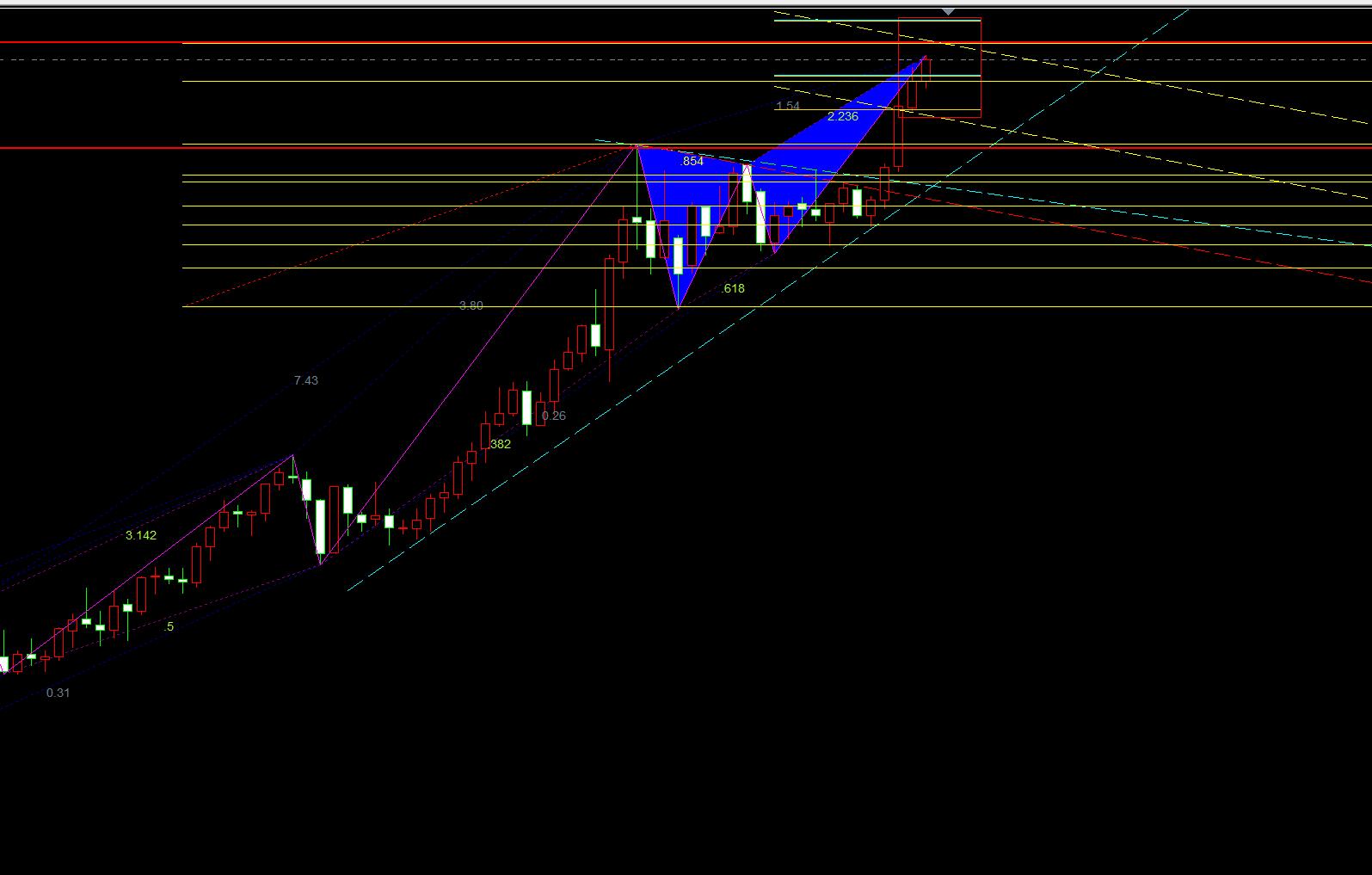 黃金已經到3700也時候理智的時候了,現在一定有人開始喊3800甚至4000也有5000的,也許有一天會到,但是你還在追多你的賬戶一定活不到哪個時候,下跌的力度遠遠大過上漲的力度,一陰吃五陽隨時上演,所以我們也不去追多,但不去不斷的猜頂,這個更多的時候就是耐心等待最佳機會出現,這個機會一是和諧波的轉折K線出現,點位就在上圖邊線附近,二是四小時的弱空信號出現,現在價格還在四小時的上線支撐,不過在加速線這裡開始壓制,一旦收復上線就是我們右側入場的時候,所以綜合得出結論就是:多看少動耐心等機會出現。