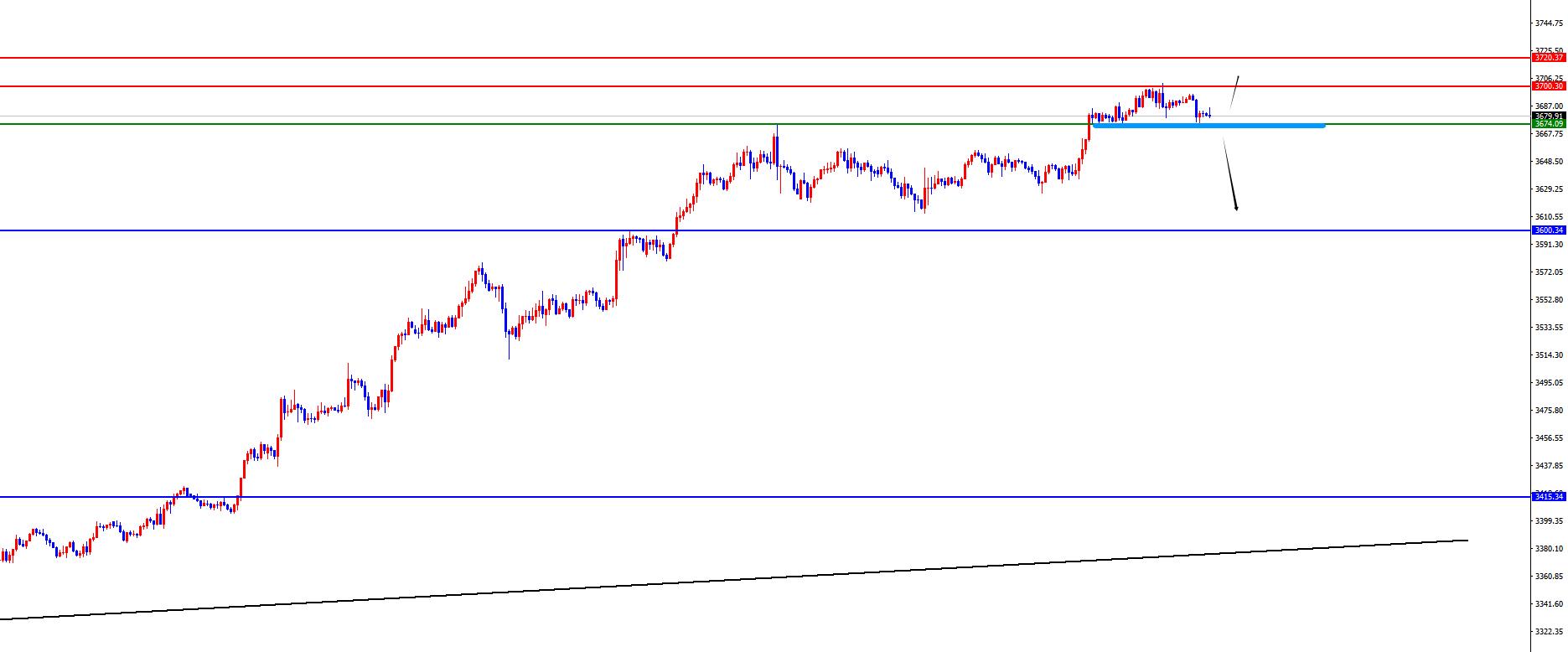 黃金關注3674分水嶺,一旦下破則需要注意調整
