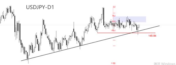 技術分析看,日線級別,USDJPY中長期為空頭趨勢,但自4月22日開始,進入築底階段。圖中黑色上升趨勢線為築底結構的支撐線,一旦該支撐被有效跌破,則新一輪下跌走勢將開啟。昨日K線形態為鎚頭,典型特徵是下影線較長,意味著當前的買入力量較強。並且昨日最低點與7月24日的階段性低點重合,形成標準的雙底結構。技術角度看,USDJPY將展開一輪反彈走勢,反彈的上限在0.382~0.618之間,對應147.94~149.06點。