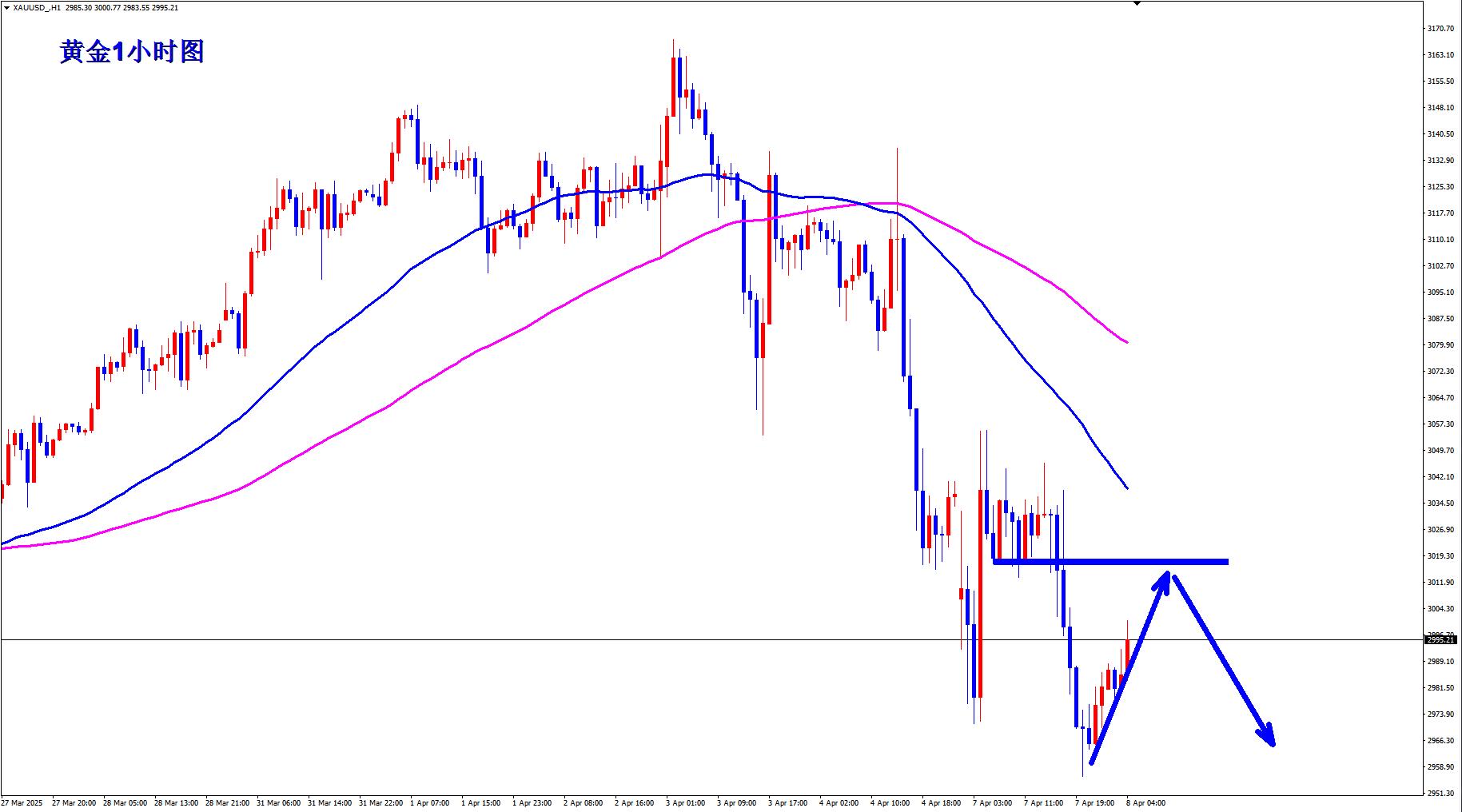 黃金1小時均線繼續死叉向下的空頭排列,黃金空頭的動能還在,黃金反彈繼續空,黃金1小時上一個箱體震蕩的強阻力區間在3017附近,黃金早https://xn--xm-6d1dw86k.com盤反彈承壓3017繼續逢高空,黃金反彈繼續空,當然黃金這幾天連續大跌,行情可能就要開始逐漸開始走修復行情了,要耐心等待反彈機會,不要輕易去追空。