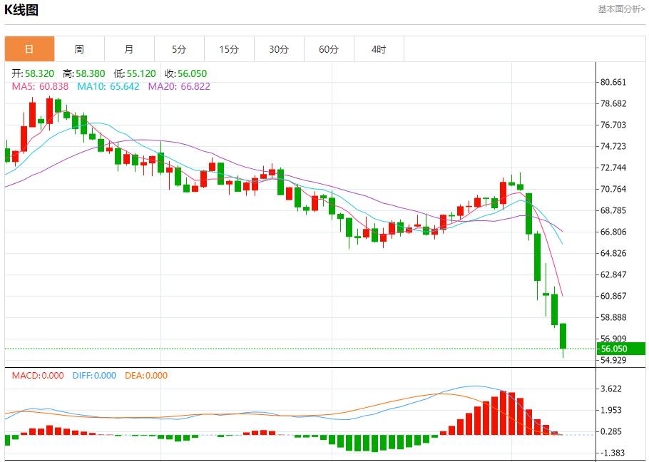 原油市場:截止北京時間20:18,美油下跌,現報56.220,跌幅5.61%。紐市盤前,原油價格在早盤交易中表現出一定的穩定性後,在最近的水平上恢復了跌勢,試圖收回之前的部分損失。這是在相對強弱指標(RSI)發出負面信號的情況下出現的,短期內熊市趨勢占主導地位。