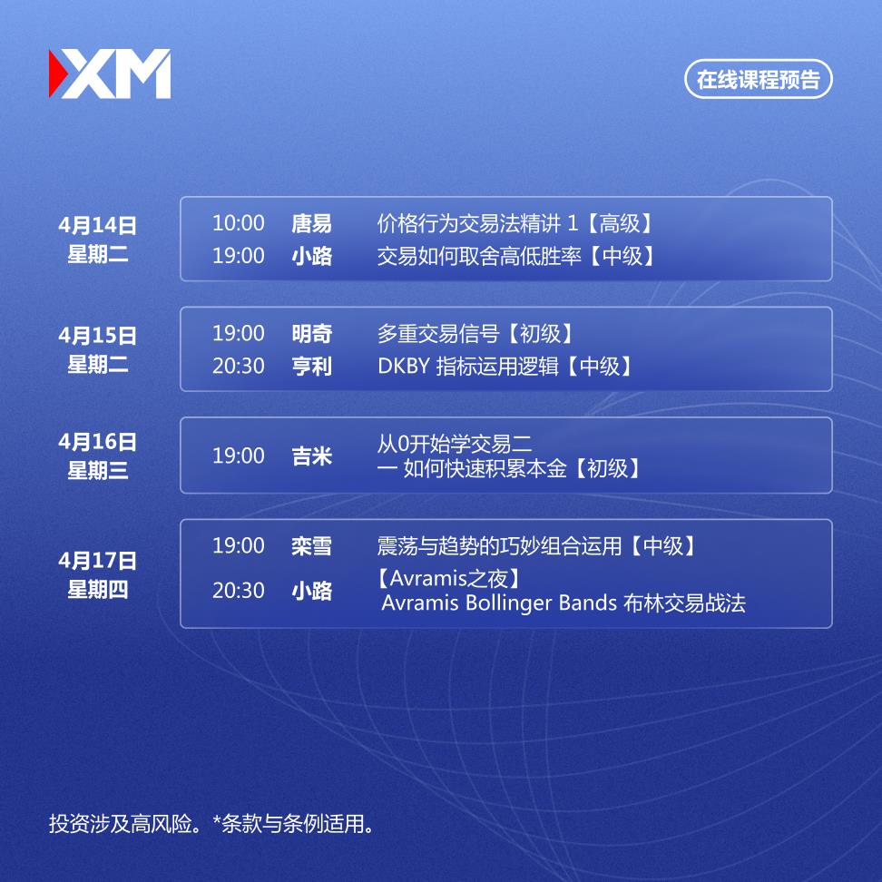 以上內容就是關於“【XM Group】:中文在線直播講座,本週預告”的全部內容,是由XM外匯小編認真整理編輯的,希望對你的交易有所幫助!感謝支持!