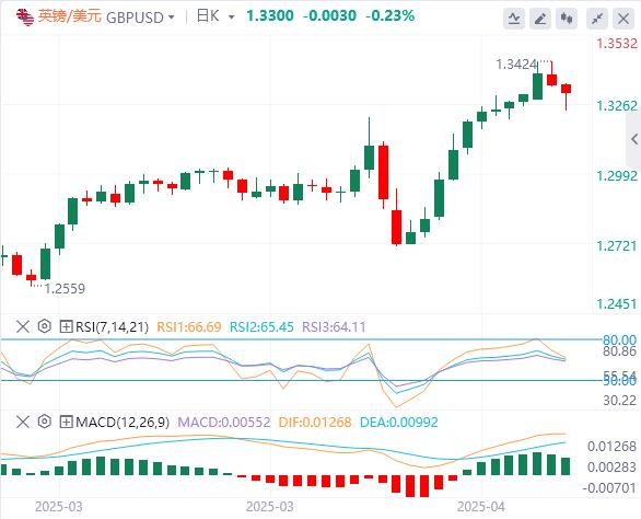 4月23日,北京時間週三亞市早盤,美元指數徘徊在99.30附近。週二,在對美國關稅貿易談判的樂觀預期下,美元指數較低點反彈近百點,最終收漲0.634%,報98.98。美債收益率漲跌互現,基準的10年期美債收益率收報4.4%;對貨幣政策更敏感的兩年期美債收益率收報3.825%。由於全球貿易緊張局勢緩和提振了風險情緒以及美元走強,現貨黃金沖高回落,盤中歷史性地觸及3500美元關口後急墜逾130美元,最終收跌1.24%,報3382.17美元/盎司。現貨白銀同樣呈倒V走勢,再次挑戰33美元關口失敗,最終收跌0.59%,報32.48美元/盎司。隨著美國對伊朗實施新制裁和股市上漲,國際原油從前一交易日的大幅拋售中反彈。 WTI原油一度站上64關口,最終收漲1.28%,報63.41美元/桶;布倫特原油收漲1.06%,報66.44美元/桶。